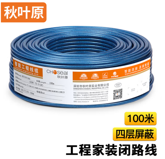 首页 > 广播、电视、电影设备 > 组合音像设备 > 会议、广播及音乐欣赏系统 > 秋叶原(CHOSEAL)数字高清四层屏蔽 闭路线 工程家装192网铝镁丝编织100米QS2104T100S (SKU:yzwhyp938464