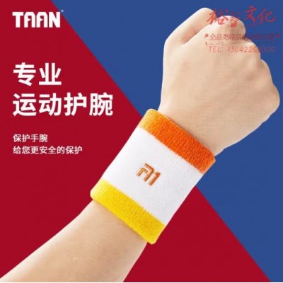 TAAN泰昂 运动护腕薄款透气吸汗棉质擦汗腕带长护腕2只 HJ1311白桔黄 (SKU:yzwhyp938569