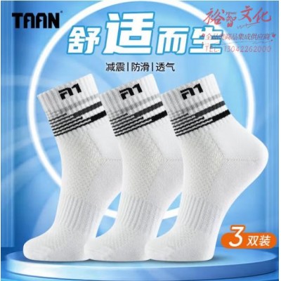 TAAN泰昂 男款加厚毛巾底中筒羽毛球袜子 T513白黑色3双装 (SKU:yzwhyp938616