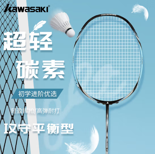 川崎(KAWASAKI)羽毛球拍单拍超轻全碳素专业训练拍 T280蓝色(已穿线) (SKU:yzwhyp938801