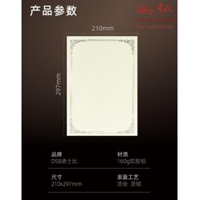 DSB(迪士比)企业定制荣誉证书内芯10张免费排版打印 简约花边A4烫金奖状纸聘书授权培训结业空白内芯 6627 (SKU:yzwhyp939124