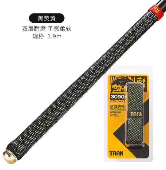 TAAN泰昂 鱼竿缠把带加厚双层打孔专利款防滑吸汗带 FH3090 1.9M黑荧黄 (SKU:yzwhyp939215