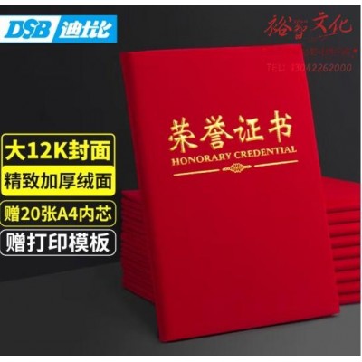 DSB 大12K绒面经典款荣誉证书获奖证书颁奖证书奖状证书证书外壳 10本装【附20张内芯】050808 (SKU:yzwhyp939264