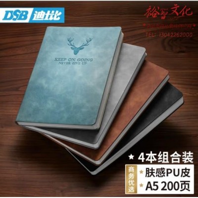 DSB 4本装 A5/200页肤感皮面本商务笔记本子 软面抄日记本成人工作记事本会议记录本文具(蓝/黑/棕/灰)6617 (SKU:yzwhyp939308