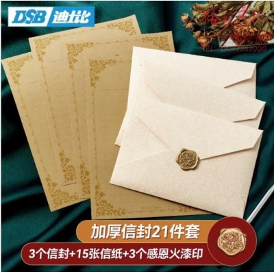 DSB(迪士比)加厚麻布纹信封信纸套装情书精美圣诞节元旦新年生日礼物贺卡 米白色21件套配感恩火漆印 8211 (SKU:yzwhyp939312