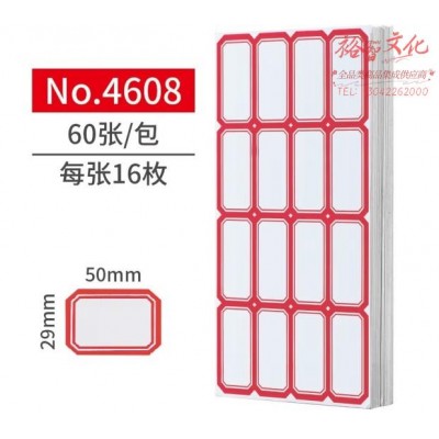 DSB 960枚50×29mm不干胶标签贴纸自粘性标贴 16枚/张 60张/包 易撕口取纸姓名贴价格贴4608红色 (SKU:yzwhyp939323