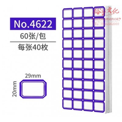 首页 > 办公用品 > 文具 > DSB 2400枚29×20mm不干胶标签贴纸自粘性标贴 40枚/张 60张/包 易撕口取纸姓名贴价格贴4622蓝色 (SKU:yzwhyp939341
