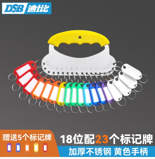 DSB(迪士比)黄色钥匙盘18位 23个标记牌 钥匙圈环钥匙牌钥匙标记牌钥匙串钥匙扣加厚不锈钢可标记分类收纳管理 (SKU:yzwhyp939365