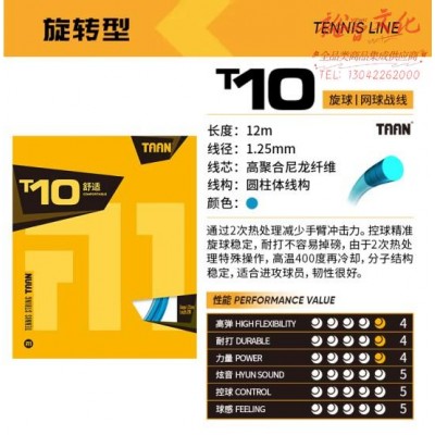 TAAN泰昂 网球线聚酯硬线耐打旋球专业网线 T10 湖蓝色单卡装 (SKU:yzwhyp939419