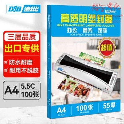 DSB(迪士比)A4 5.5c厚 塑封膜 高清透明文件过塑膜照片相片覆膜塑封纸护卡膜塑封皮 218*305mm 100张/盒 (SKU:yzwhyp939500