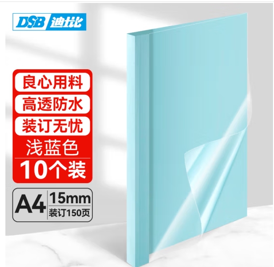DSB(迪士比)高透明热熔封套A4 热熔装订专用胶装封面装订封皮 浅蓝 15mm 10个装 (SKU:yzwhyp939540