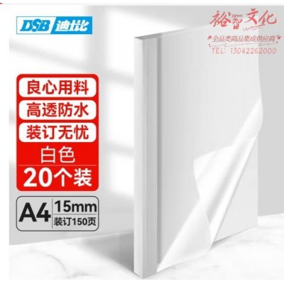 DSB(迪士比)高透明热熔封套A4 热熔装订专用胶装封面装订封皮 白色 15mm 20个装 (SKU:yzwhyp939563