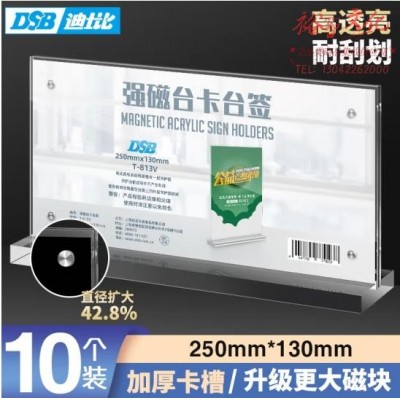 首页 > 办公用品 > 文具 > DSB(迪士比)桌牌席卡亚克力T型强磁台卡台签 250mm*130mm 横款 高清桌签广告会议展示牌酒水餐桌牌 10个装 T-813V (SKU:yzwhyp939574