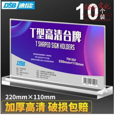 DSB(迪士比)桌牌席卡亚克力T型台卡台签 220mm*110mm 横款 高清桌签广告会议展示牌酒水餐桌牌 10个装 7015V (SKU:yzwhyp939580