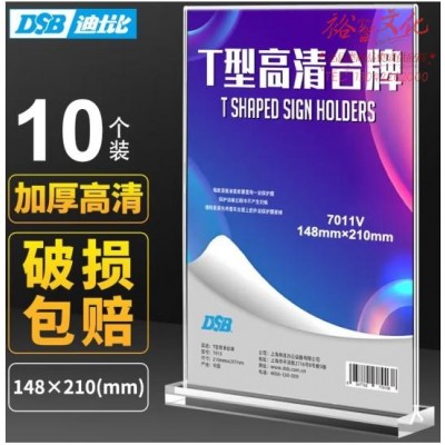 DSB(迪士比)桌牌席卡亚克力T型台卡台签 148mm*210mm 竖款 高清桌签广告会议展示牌酒水餐桌牌 10个装 7011V (SKU:yzwhyp939598