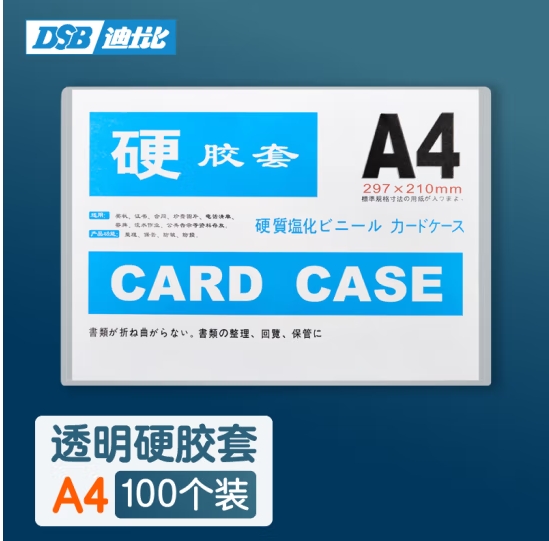 DSB(迪士比)A4透明硬胶套卡套透明文件套展示框pvc硬塑料套纸保护套材料展示袋卡k士 100个装(厂家直发) (SKU:yzwhyp939610