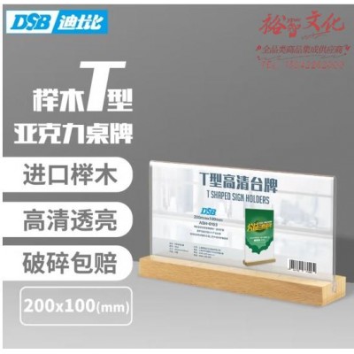 DSB(迪士比)桌牌T型席卡亚克力台卡榉木底座台签立牌广告会议展示牌酒水餐桌牌 200*100mm 横款 ASH-6103 (SKU:yzwhyp939618