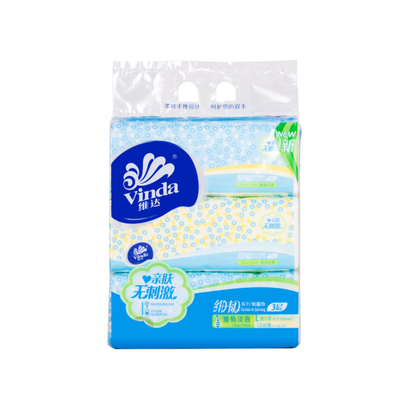 维达(Vinda) 超韧袋装抽取面巾 189*195*3层/张 V2269 白色 150抽/包 3包/提SKU:yzwhyp939639