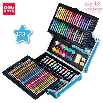 得力(deli)豪华绘画套装123件 儿童双层铝合金彩笔套装 幼儿园美术水彩笔蜡笔画画套装75406 (SKU:yzwhyp939679