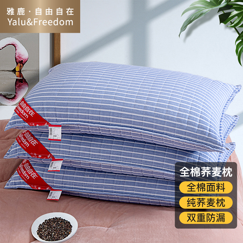 雅鹿 全棉荞麦枕头枕芯 约5斤颈椎枕 花草枕可拆洗46*72cm单只装 蓝纹SKU:yzwhyp939691