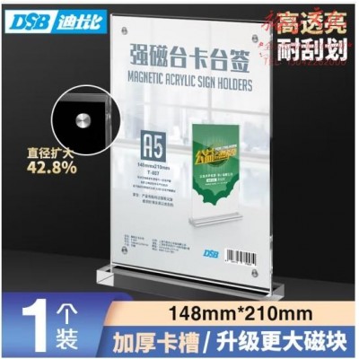 DSB(迪士比)桌牌席卡亚克力T型强磁台卡台签 148mm*210mm A5竖款 高清桌签广告会议展示牌酒水餐桌牌 T-807 (SKU:yzwhyp939814