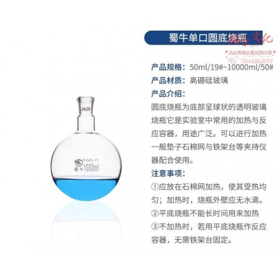 单口圆底烧瓶 标准磨砂口耐高温球形实验室耗材蒸馏瓶 1000ml-24 (SKU:yzwhyp939935