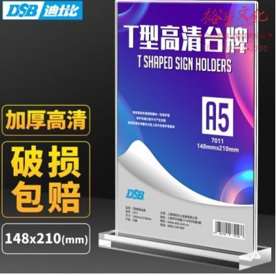 DSB(迪士比)桌牌席卡亚克力T型台卡台签会议牌桌签牌席卡座位牌广告展示牌 148mm*210mm A5 竖款7011 (SKU:yzwhyp939957