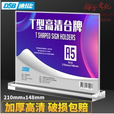 DSB(迪士比)桌牌席卡亚克力T型台卡台签会议牌桌签牌席卡座位牌广告展示牌 210mm*148mm A5 横款7010 (SKU:yzwhyp939958