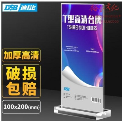 DSB(迪士比)桌牌席卡亚克力T型台卡台签会议牌桌签牌席卡座位牌广告展示牌 100mm*200mm 竖款7007 (SKU:yzwhyp939959
