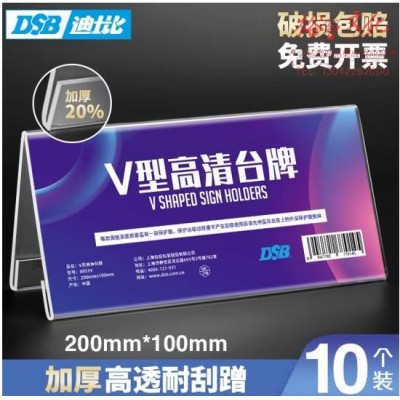 DSB(迪士比)桌牌席卡亚克力V型台卡台签会议牌桌签牌席卡座位牌广告展示牌 200mm*100mm 10个装 8853V (SKU:yzwhyp939971