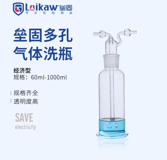 垒固 多孔气体洗瓶孟氏洗气 瓶 大底座厚壁高硼硅玻璃洗气 瓶 经济型洗瓶1000ml/40# (SKU:yzwhyp939976