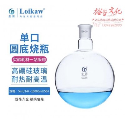 首页 > 建筑建材 > 手动工具 > 垒固 玻璃单口圆底烧瓶标准磨砂口耐高温球形实验室耗材蒸馏瓶 100ml/24# (SKU:yzwhyp940007