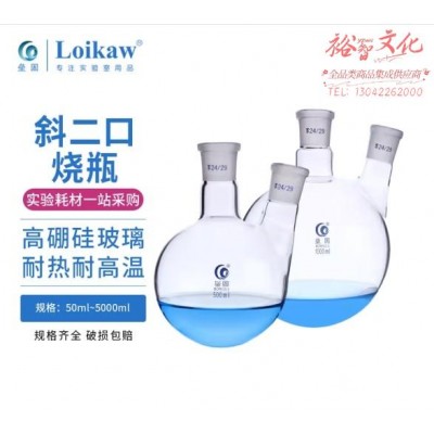 垒固 斜二口烧瓶圆底两口烧瓶高硼硅耐高温圆底烧瓶反应瓶 斜二口2000ml/24#*24 (SKU:yzwhyp940164