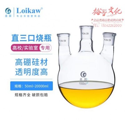 垒固 高硼硅玻璃直三口圆底烧瓶三颈厚壁反应瓶蒸馏烧瓶实验室器材 250ml/24*24*24 (SKU:yzwhyp940184