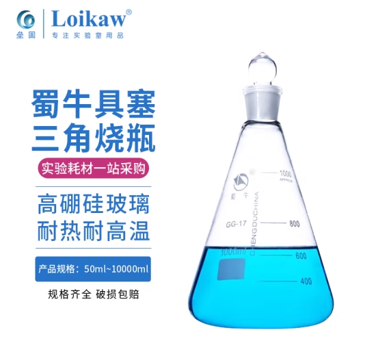 首页 > 建筑建材 > 手动工具 > 玻璃具塞三角烧瓶带玻璃塞锥形瓶三角瓶 具塞1000ml/24# (SKU:yzwhyp940311