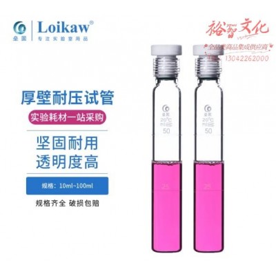 垒固 厚壁耐压瓶 高硅硼加厚玻璃耐压试管 带刻度四氟螺口塞试管 100ml圆底耐压试管 (SKU:yzwhyp940440