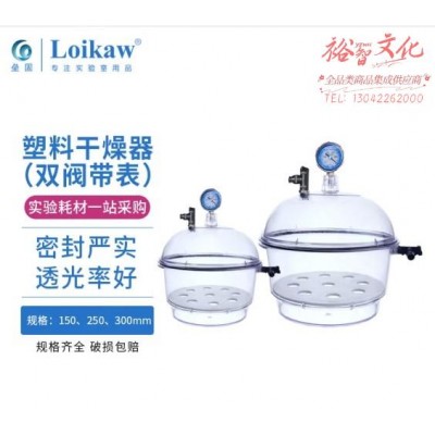 垒固 塑料真空干燥器防潮缸干燥皿透明 300mm(双阀带表) (SKU:yzwhyp940497