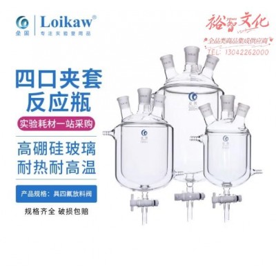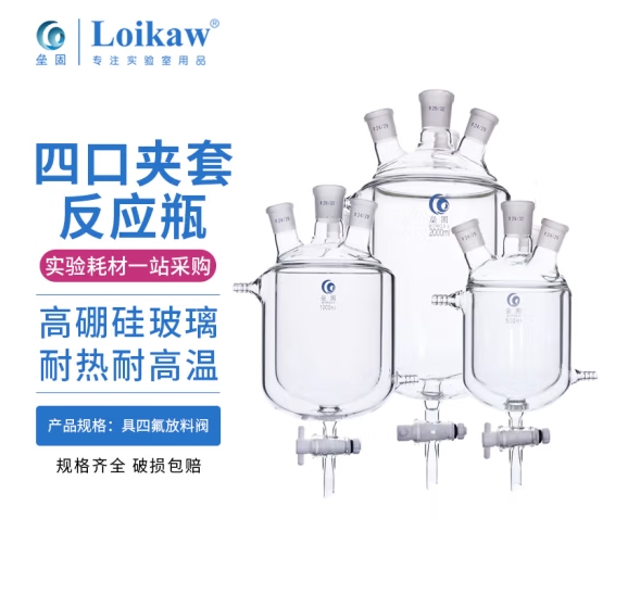 垒固 夹套反应釜开口反应器双层夹套烧杯四口玻璃反应烧瓶夹套反应瓶 聚四氟放料阀 2000ml/24*4 (SKU:yzwhyp940729