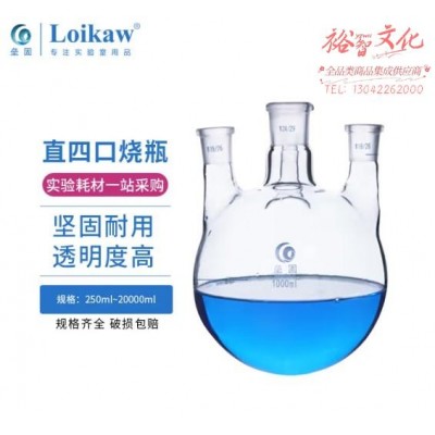 垒固 直四口烧瓶高硼硅厚壁圆底烧瓶标口四颈反应器烧瓶 250ml、24*24*24*14 (SKU:yzwhyp940835