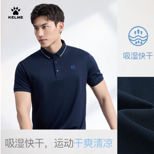 卡尔美(KELME)运动短袖POLO衫男夏季新款轻薄舒适透气经典通勤翻领T恤上衣 深夜蓝 XL (SKU:yzwhyp941356