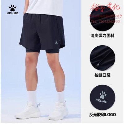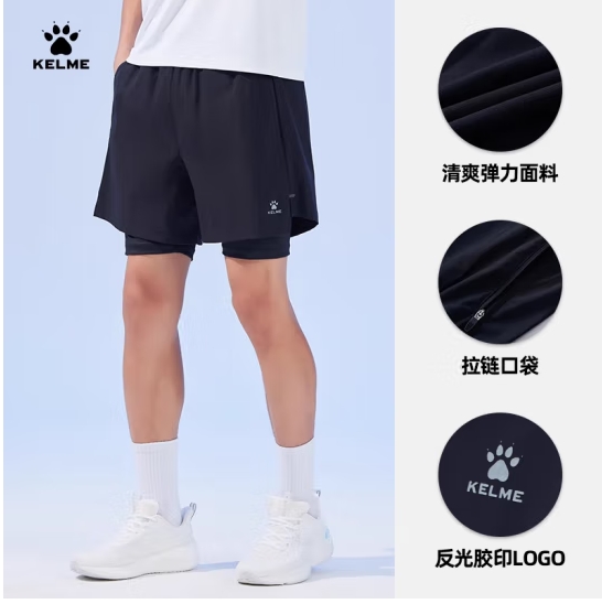 卡尔美(KELME)运动短裤男2024夏季新款跑步训练健身紧身假两件足球运动裤子 玛瑙黑 XL (SKU:yzwhyp941362
