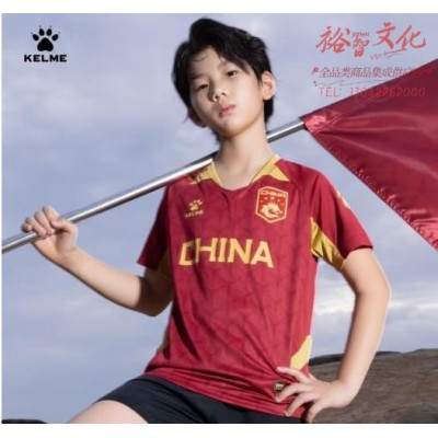 卡尔美(KELME)儿童短袖足球服 出征卡塔尔系列青训比赛训练服可定制DIY球衣 酒红 150 (SKU:yzwhyp941459