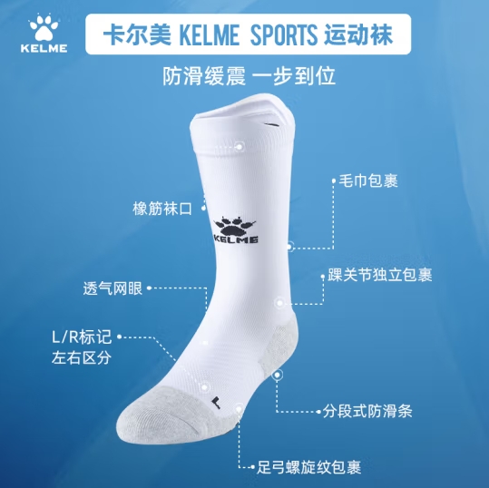 首页 > 体育设备设施 > 健身设备 > KELME/卡尔美中筒袜防滑硅胶袜加厚毛巾底足球袜篮球袜跑步袜子男女 白黑 均码 (SKU:yzwhyp941478