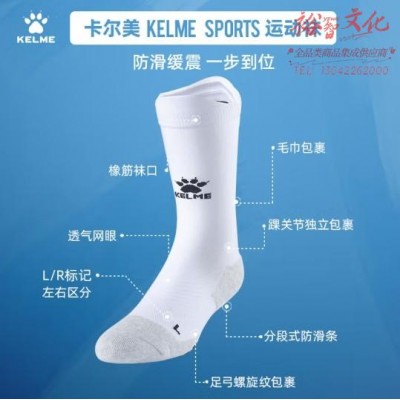 KELME/卡尔美中筒袜防滑硅胶袜加厚毛巾底足球袜篮球袜跑步袜子男女 白黑 均码 (SKU:yzwhyp941478