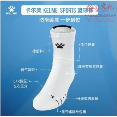 尔美(KELME)篮球袜秋新款男长筒加厚毛巾底实战精英篮球袜运动跑步袜子 中款白蓝橙【39-44】 均码 (SKU:yzwhyp941565