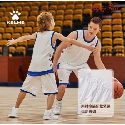 卡尔美(KELME)儿童篮球服套装男薄款撞色运动夏训练队服女背心球衣 白彩蓝 L (SKU:yzwhyp941602