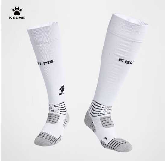 KELME/卡尔美足球袜过膝透气长筒袜比赛训练防滑毛巾底加厚高筒袜子男 白黑 M(39-41) (SKU:yzwhyp941627