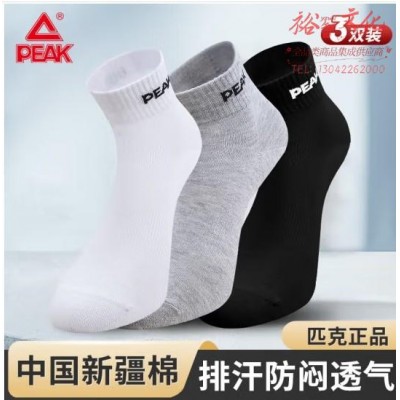 匹克运动袜男吸汗防脱羽毛球袜子跑步篮球透气短筒袜3双均码黑白灰 (SKU:yzwhyp941712
