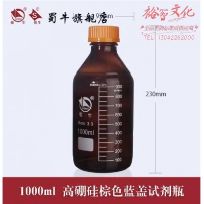 蜀牛 高硼硅玻璃橙盖试剂瓶GL45螺口试剂瓶丝口瓶透明棕色蓝盖瓶 1000ml【棕色】 高硼硅试剂瓶 (SKU:yzwhyp941880