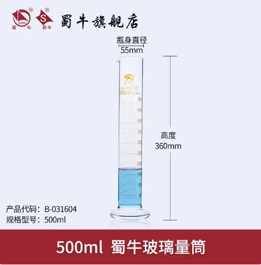 蜀牛 量筒 刻度量筒实验室玻璃量具 500ml 玻璃量筒 (SKU:yzwhyp941937